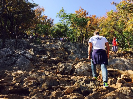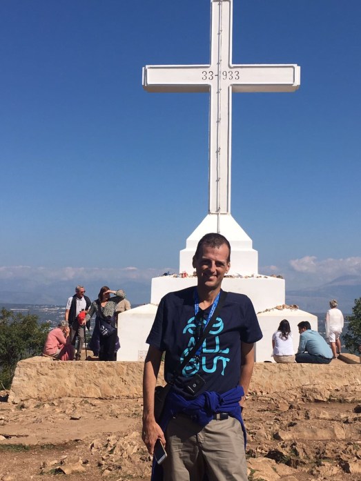 Medjugorje significa «entre montañas». Los dos principales de nuestra visita son el Podbrdo (la Colina de las Apariciones), y el Monte Krizevac (el Monte de la Cruz). Montañas escarpadas de roca erosionada por las lluvias y las escorrentías, de difícil acceso. La subida al Krizevac está compuesta de un Viacrucis hasta alcanzar la cruz blanca de la cima tras pasar por las catorce estaciones. 509 metros de altitud. ¿Cómo poder subir esa montaña en mi estado? Estaba claro que necesitaría ayuda para transportar mi silla plegable y nuestras mochilas. En algunas zonas, alguien tendría que darme un empujón o sostenerme para evitar mi caída. Y apareció un cirineo llamado César. Con la delicadeza y el cariño, con la palabra adecuada, con el silencio cómplice. Él sacrificó su subida, planeada seguro de forma más confortable, por permitir la mía a paso lento y majestuoso. A él, de manera espontánea, se fueron uniendo otros muchos, amigos y anónimos, que fueron relevándose en el porte de mi silla cual estandarte de la peregrinación. Benditos sean los cirineos de este mundo, desprendidos acompañantes de los enfermos y los que sufren. Dios os bendiga siempre.