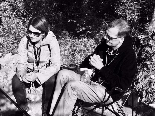 Las tardes de la peregrinación tenían todas el mismo esquema. En la amplia explanada tras la iglesia, se realizaba el rezo del Santo Rosario, seguido de una Misa y finalizado por una adoración del Santísimo, de la Santa Cruz, o una Oración de Sanación. La devoción y el silencio en aquel ambiente rural envolvía de una atmósfera especial una tierra que uno sentía ya como sagrada. Junto a la explanada, una hilera de improvisados confesionarios en múltiples idiomas donde los peregrinos esperaban pacientemente a ser atendidos. Y allí nos situamos en fila. Cada uno tenemos nuestras reticencias iniciales a contar nuestros pecados al sacerdote. Pero lo que es cierto, es que el Señor les concedió ese inigualable don: a los que se los perdonéis, quedarán perdonados. Llegó mi turno. La conversación fue más larga que de costumbre… y concluyó no sólo con la absolución sino que el cura sacó por sorpresa de su bolsillo de la camisa una reliquia del Padre Pío, la puso sobre mi cabeza y comenzó una oración por mi sanación… Oh bendita Madre, gracias por aparecerte en ese momento y sentir cómo me has acompañado y me acompañarás en todo este trayecto. Perdonando mis errores. Sanando mis heridas. Limpiando mi cuerpo y mi alma…
