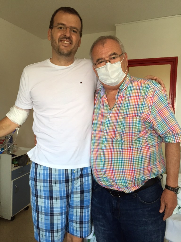 La noche del 2 de junio de hace cinco años entro en el Parque San Antonio y me recibe la Doctora Pérez, a la sazón mi amiga Margarita. Nada puede salir mal. Le comento lo del dolor de espalda, y decide hacerme un chequeo que yo consideraba rutinario: placa de espalda y analítica. La radiografía no refleja nada relevante. Cuando pensaba que era ya el momento de irme a casa, la analítica hace que disparen todas la alarmas. Necesitan hacer más pruebas. Debo quedarme ingresado. Mi amiga Margarita me regala el bocadillo de jamón serrano (me supo a gloria) que se había traído como sustento para la guardia. Me ponen la primera vía en el brazo de toda mi vida, y paso mi primera noche en un hospital… la que con el tiempo sería primera de muchas. Siempre agradeceré a Margarita que me acompañase aquella noche tan difícil. Para calmar mi hambre, y también calmar mis miedos.